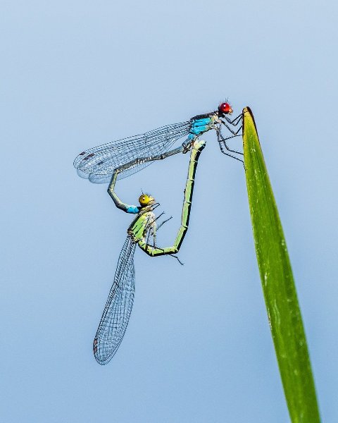 Hun fragiliteit geeft tevens hun gevoeligheid aan. Niet alleen qua lijfje en vleugeltjes, maar ook qua ‘uitrusting’. Een waterjuffer heeft, naast de door de mens zichtbare ogen, namelijk nog meer supersonisch equipement. Zo zijn er 3 oogjes (ocelli) die licht en donker onderscheiden en een paar mini-antennetjes, die de luchtsnelheid meten. Wat een magische wezentjes hè?